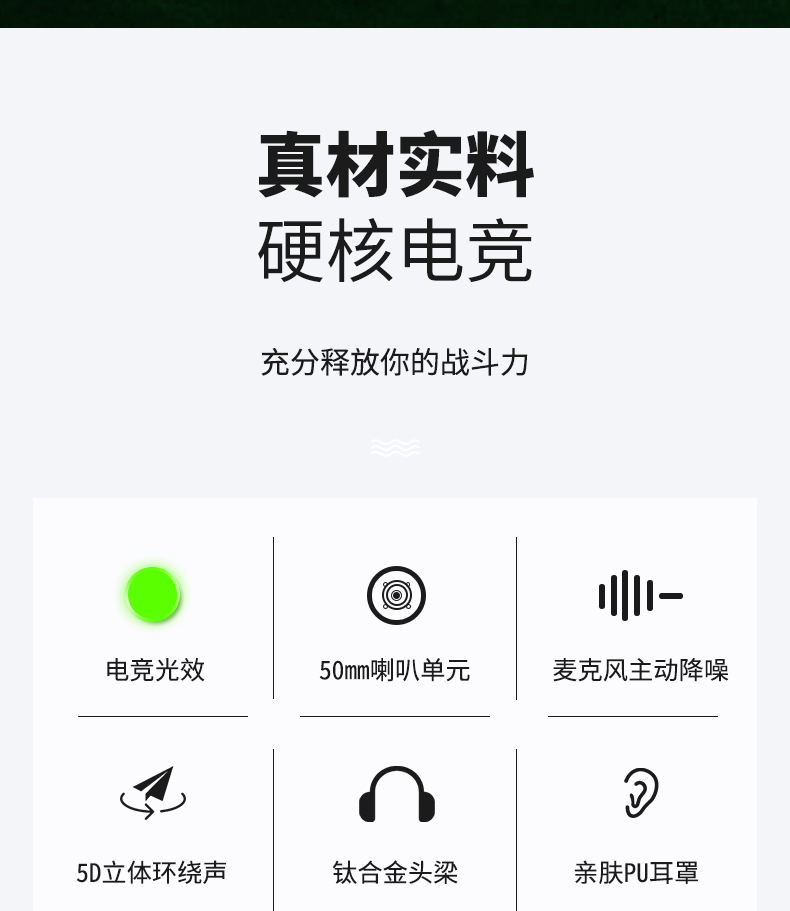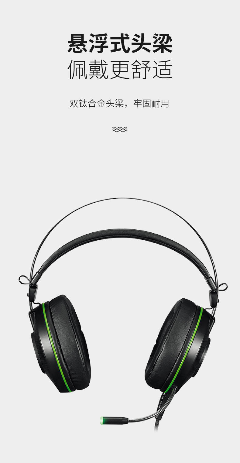 - USB连接,立体声,四声环绕,7.1声道,麦克风主动降噪,钛合金头梁