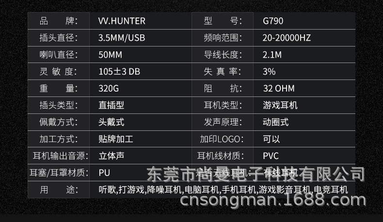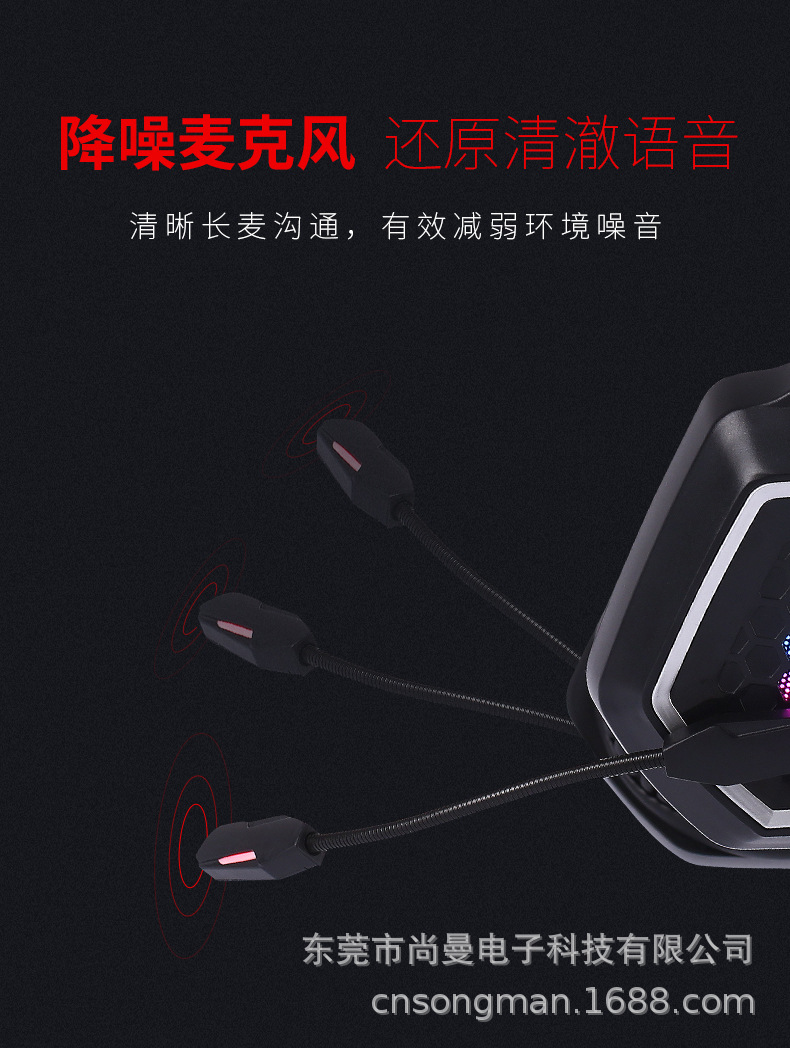 - USB连接,立体声,四声环绕,7.1声道,麦克风主动降噪,钛合金头梁