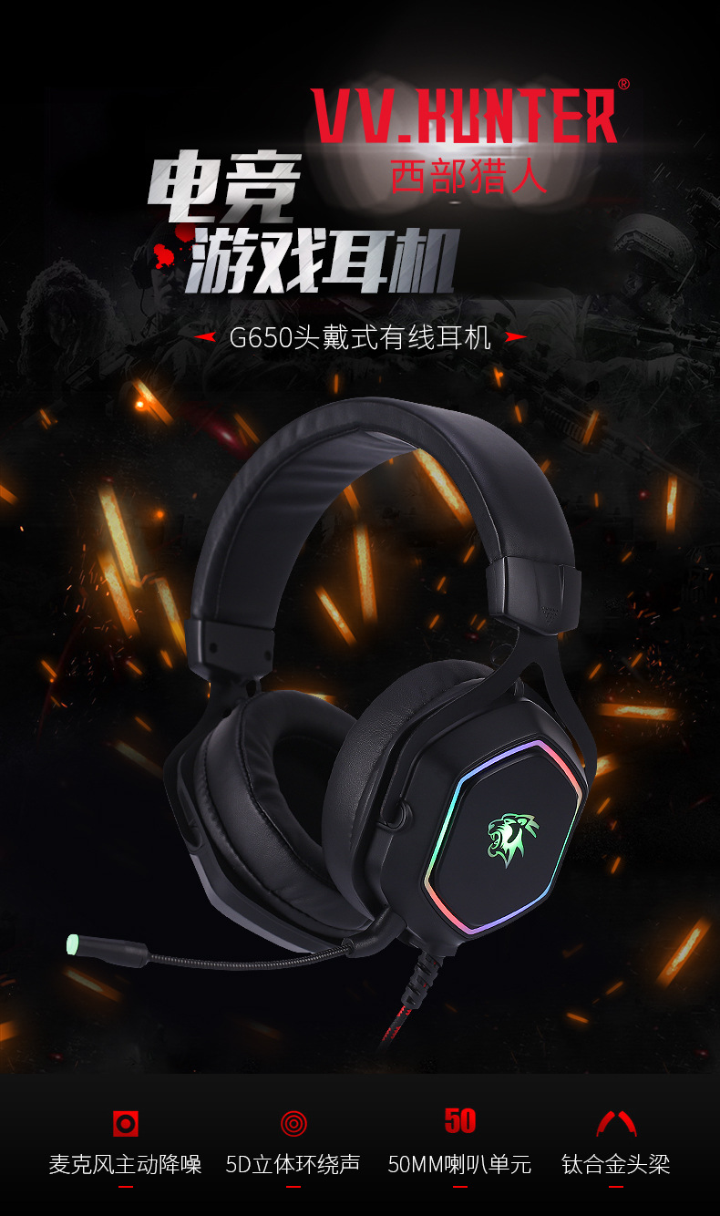 - USB连接,立体声,7.1声道,麦克风主动降噪,钛合金头梁