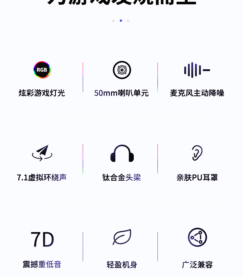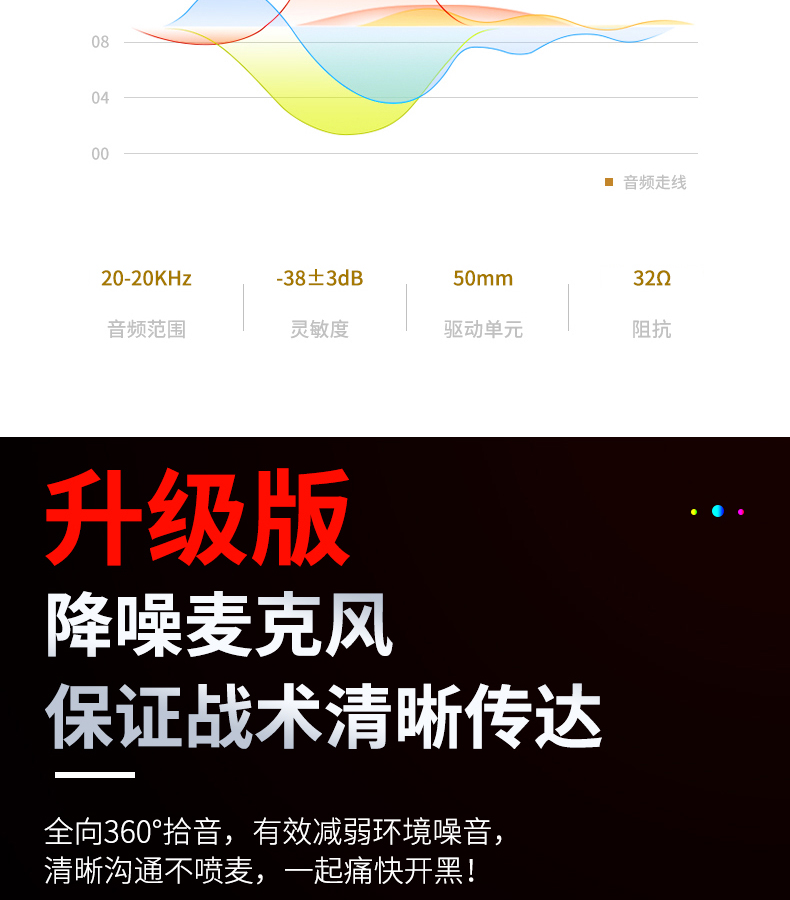 - USB连接,立体声,四声环绕,7.1声道,麦克风主动降噪,钛合金头梁