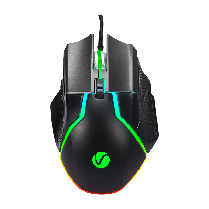 - USB连接,十档6400DPI可调,八键自定义编程,1680万色RGB光效,人体工学电竞手感