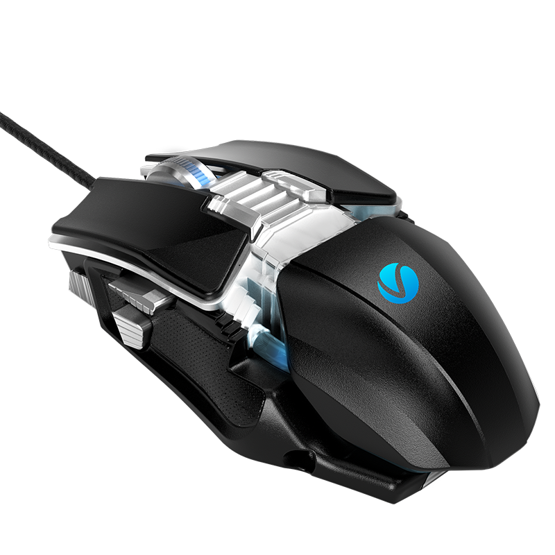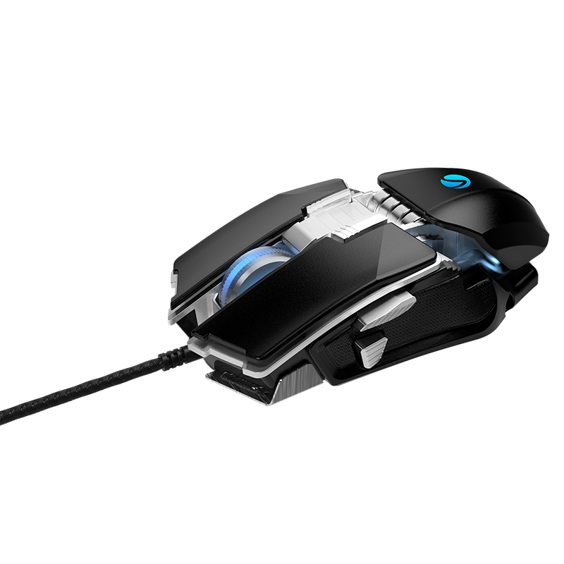 - USB连接,十档6400DPI可调,八键自定义编程,1680万色RGB光效,人体工学电竞手感